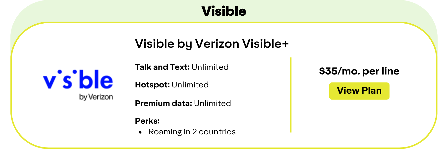 Visible+ offers simple, flat-rate pricing with strong Verizon coverage and no hidden fees.
