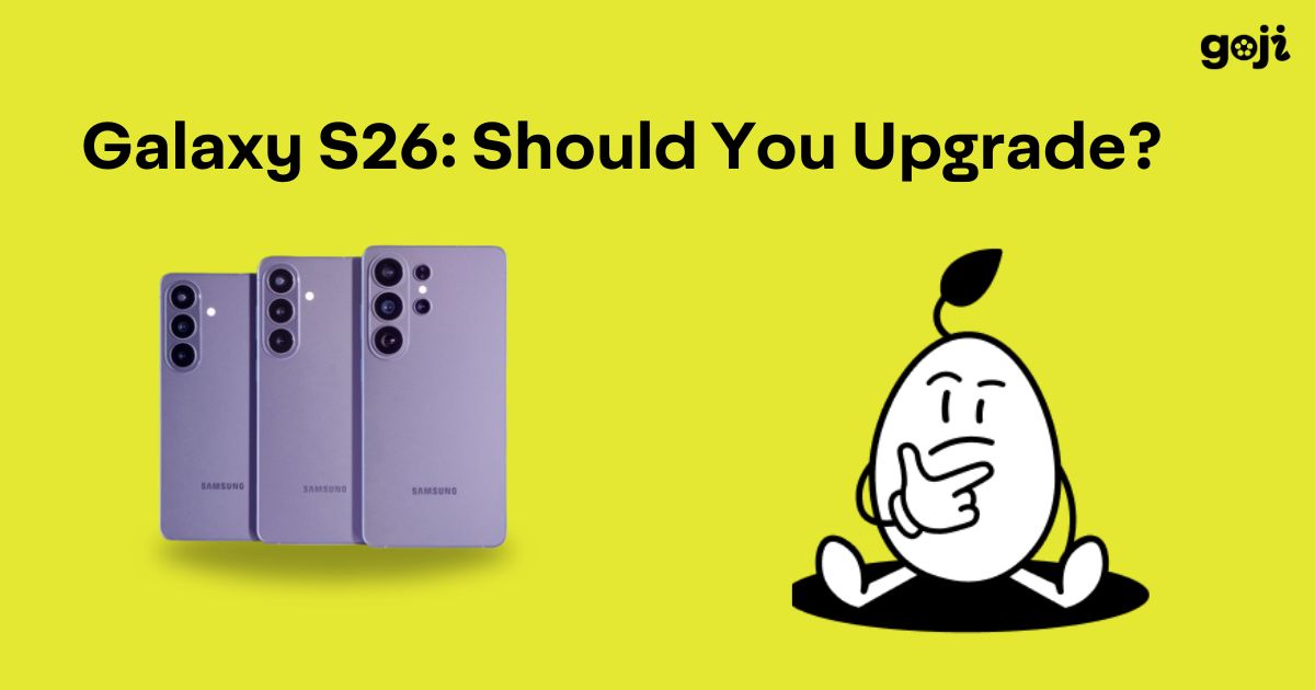 - Deals with Current Provider: If you have a current plan with a big carrier like Verizon or T-Mobile, chances are you’re eligible for an upgrade. Depending on your current plan or contract, you may be able to trade-in your current device and upgrade to the S26 Series for modest investment. You can use Goji Mobile’s Should I Upgrade tool to compare your current phone to the latest models.