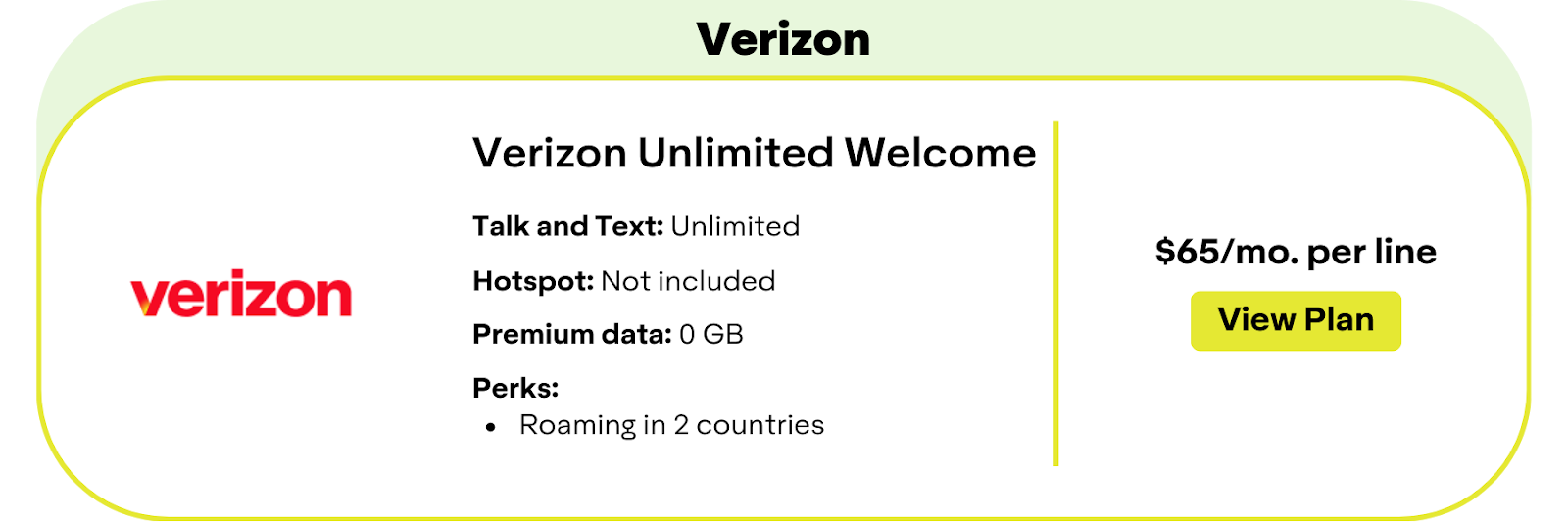 Verizon’s cheapest unlimited plan (Unlimited Welcome) does not include premium data.