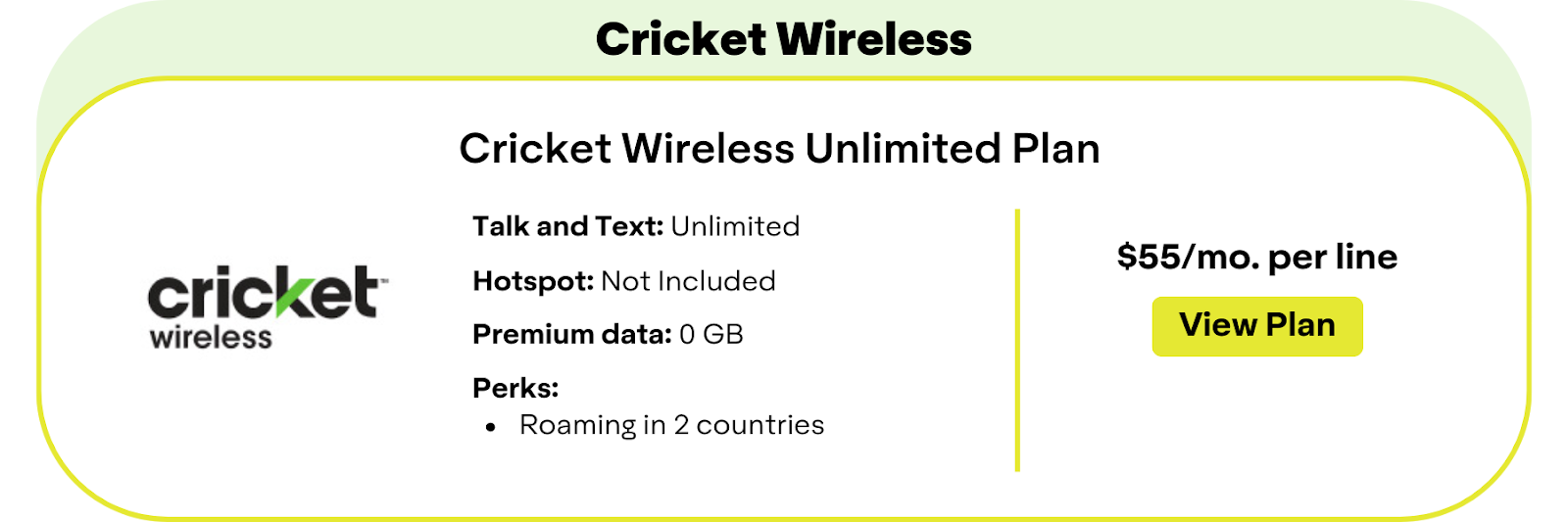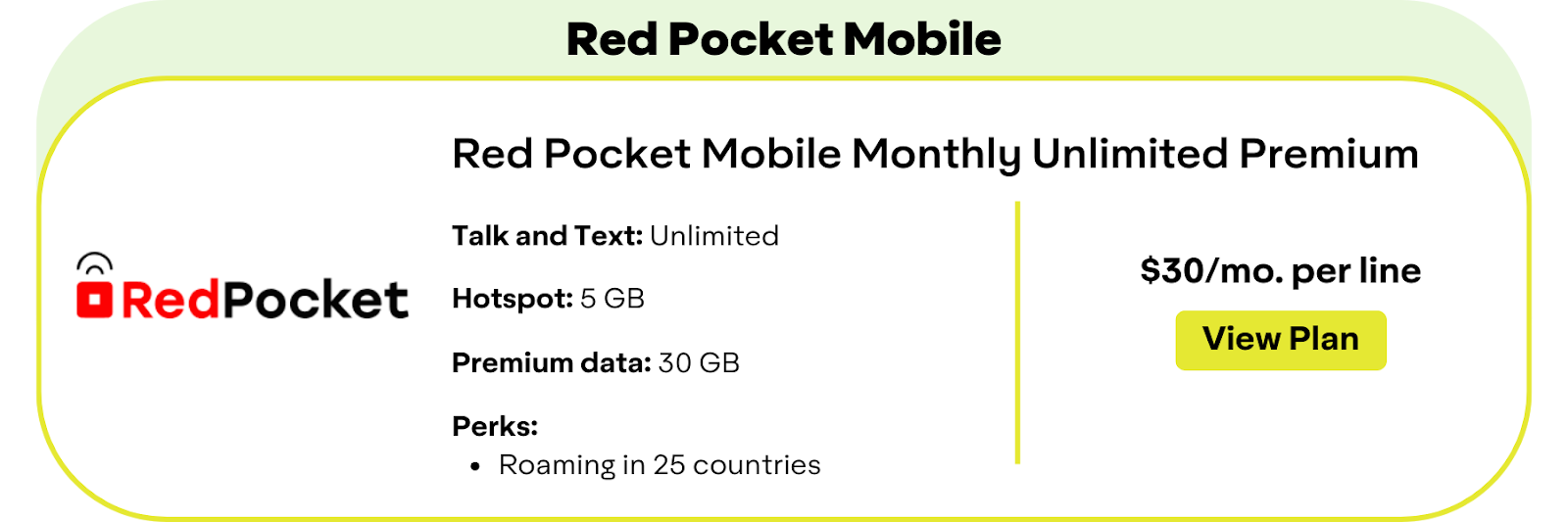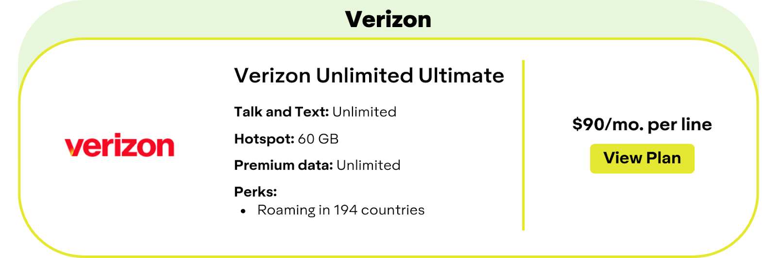 Unlimited domestic + premium international benefits (roaming, texting, and data in 194 countries) for $90/month.