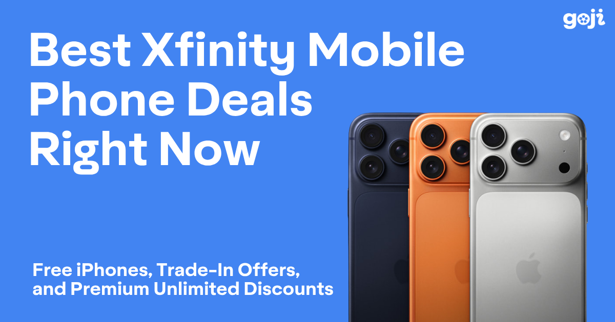 You can find the best Xfinity Mobile deals through Goji Mobile, including a Premium Unlimited plan for as low as $10 per month for the first year (then $50 per month after) and a 5G phone with a qualifying trade-in.