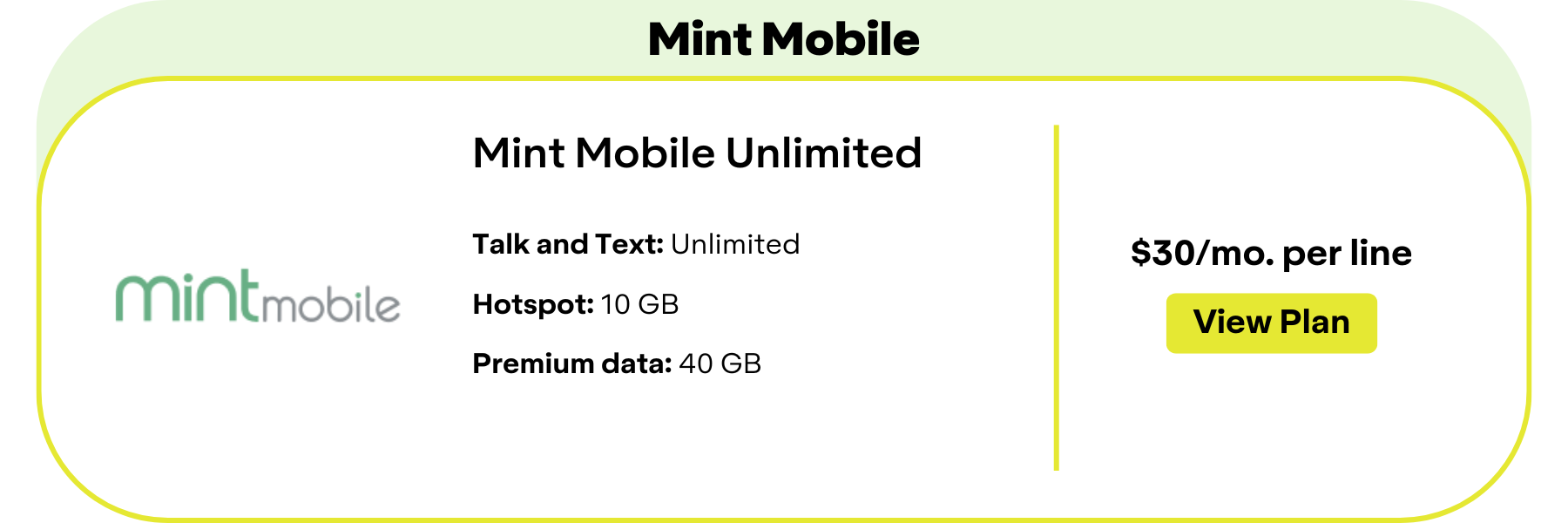 Mint’s plans are designed for flexibility and savings. All plans come with nationwide coverage, unlimited talk and text, and mobile hotspot access — you just choose your data amount and plan length.